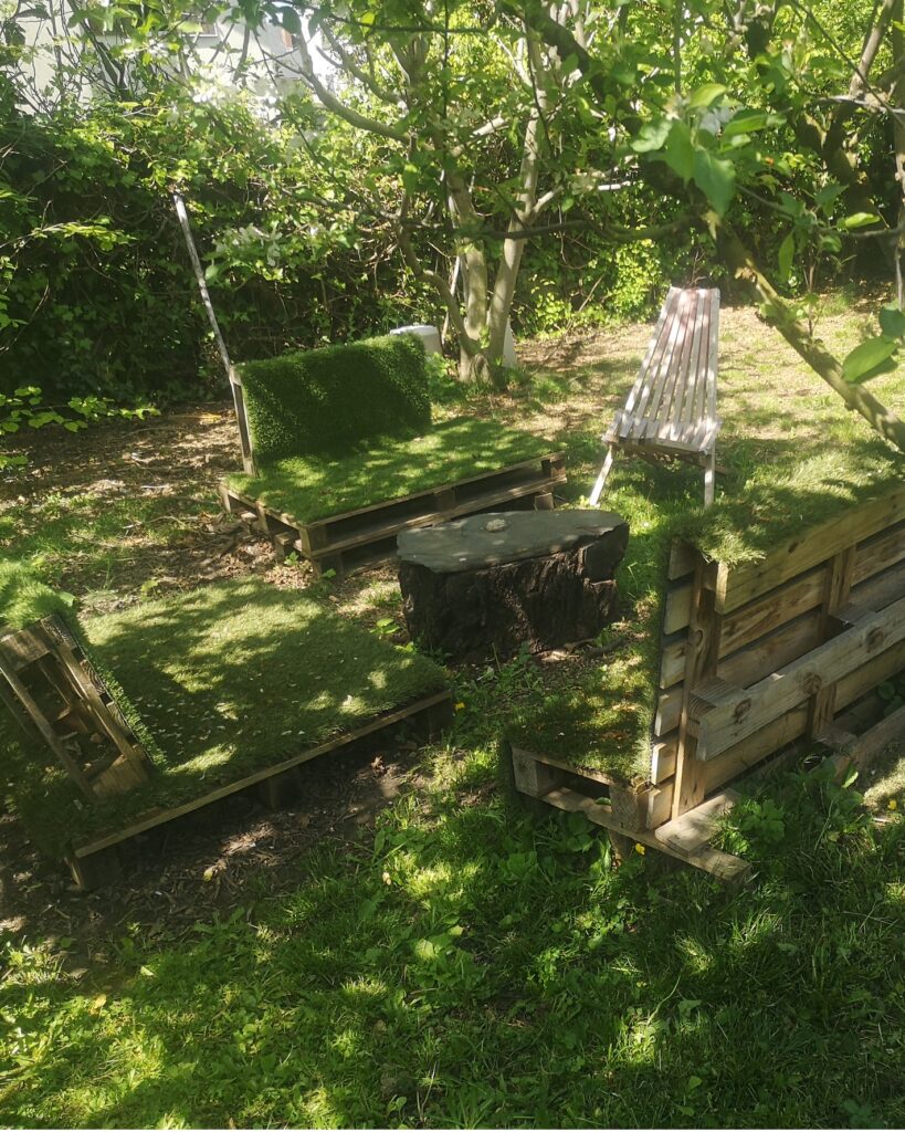 - Création d’objets de jardin pour inviter la faune, la flore et l’humain dans le jardin : hôtels à insectes, nichoirs, poulailler, treilles, carrés potager, tabliers, poches à outils, mobilier en palette, bougies anti-insectes, etc… à partir de matériaux issus du réemploi.