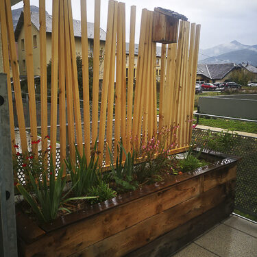 - Création d’objets de jardin pour inviter la faune, la flore et l’humain dans le jardin : hôtels à insectes, nichoirs, poulailler, treilles, carrés potager, tabliers, poches à outils, mobilier en palette, bougies anti-insectes, etc… à partir de matériaux issus du réemploi.